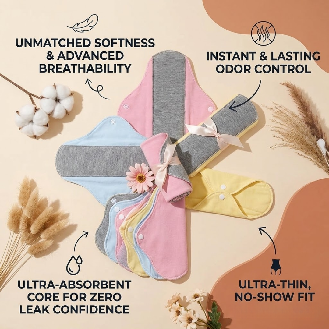 Selara Pads combine ultra-absorbent graphene backing with soft, breathable cotton layers to keep you confident and comfortable. Enjoy odor reduction, secure snap-wings, and an eco-friendly reusable design for daily peace of mind.
